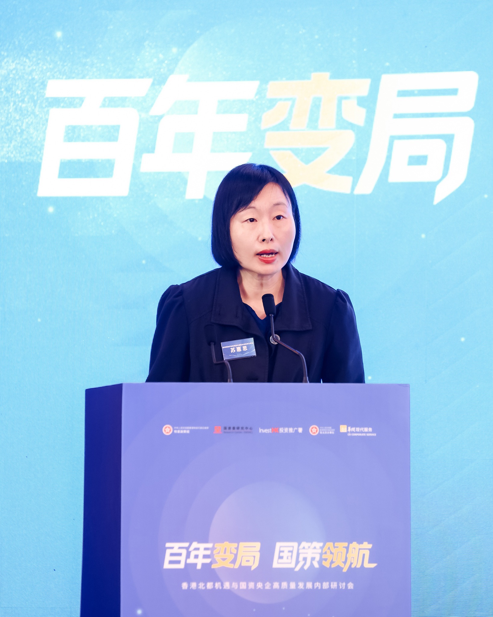 北部都會區統籌辦事處主任蘇惠思女士今日於北京出席「百年變局‧國策領航—香港北都機遇與國資央企高質量發展研討會」,向來自不同領域的內地企業代表介紹北部都會區(北都)的整體規劃及投資機遇,約60人出席。